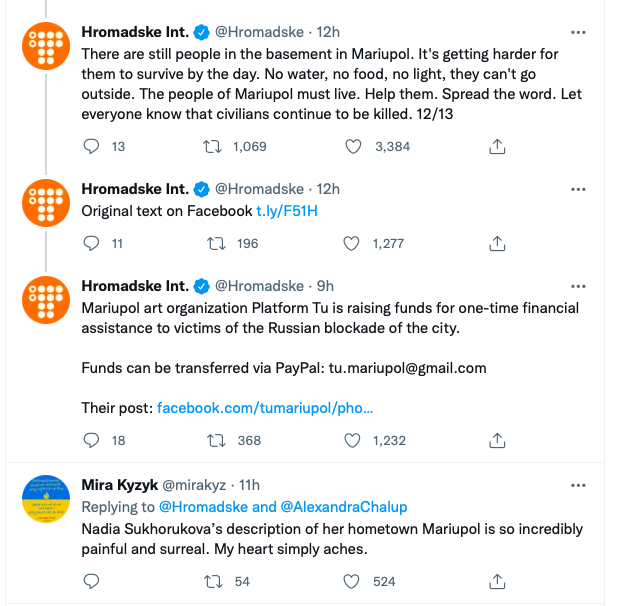 2) Mariupol art organization Platform Tu is raising funds for assistance to victims of the Russian blockade of the city. (Who) (Why)